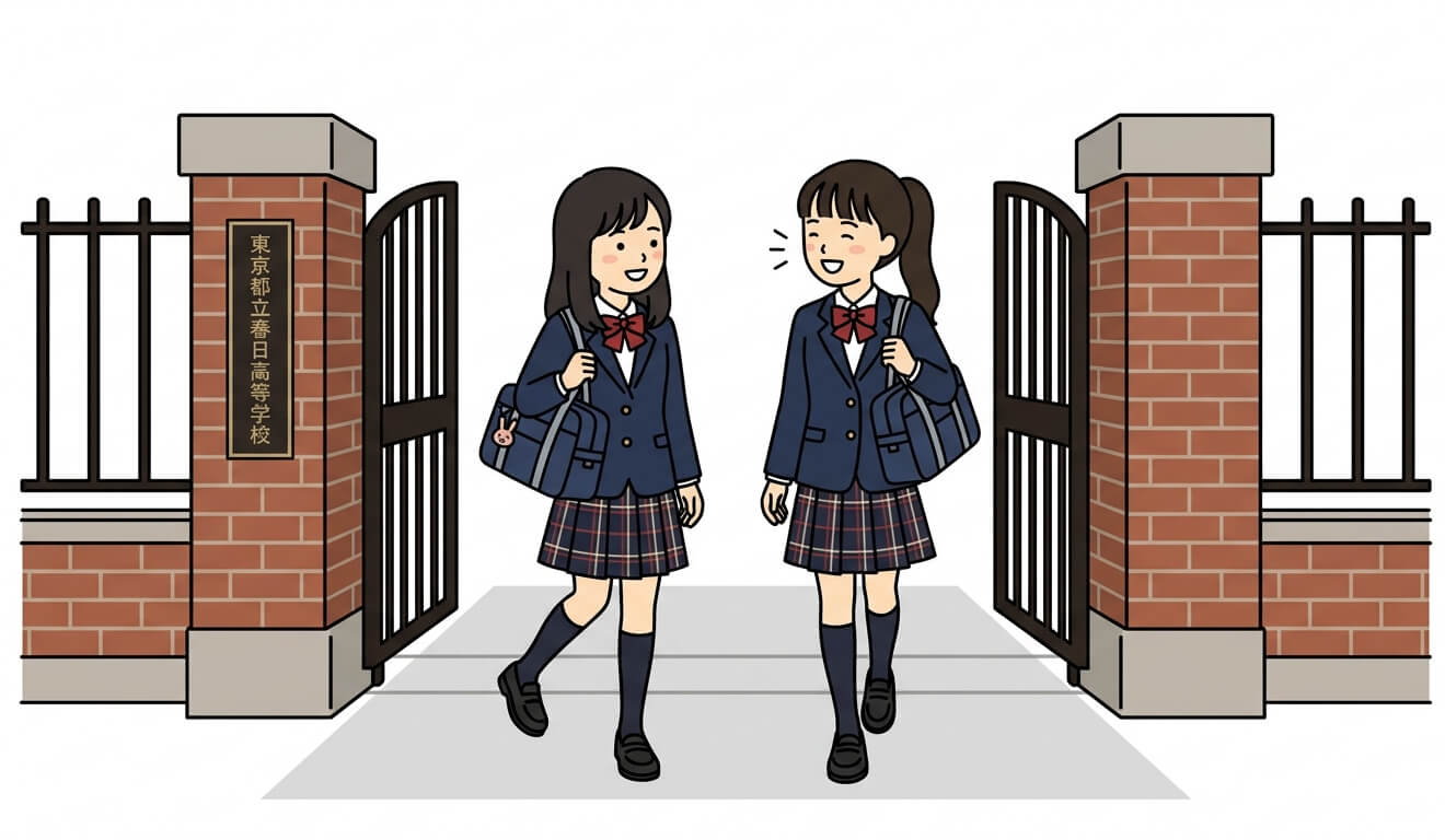 学校を出る女子生徒のイラスト
