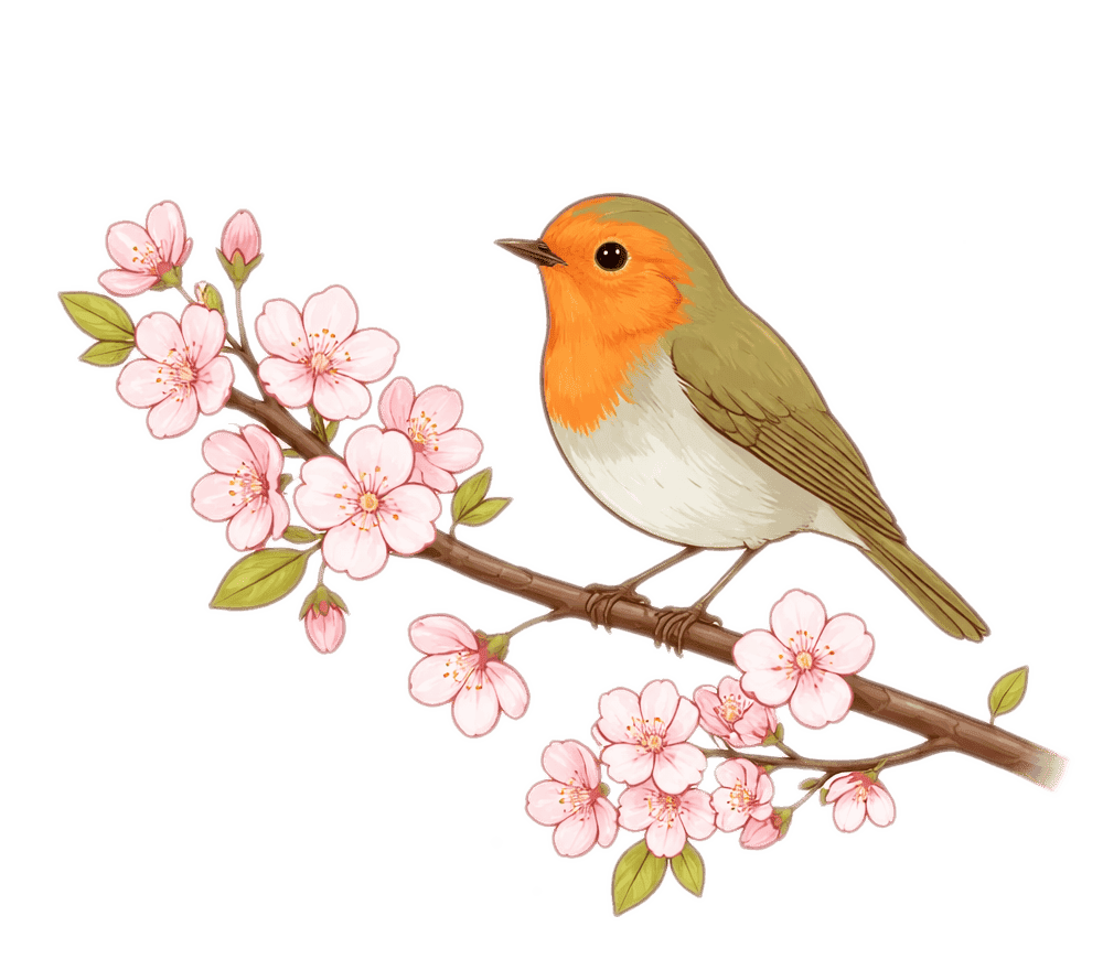 桜の枝にとまるコマドリの無料イラスト sakura-no-eda-ni-tomaru-komadori-no-mury-irasuto.png | PNG | 120 KB | 1000 × 880 | Download