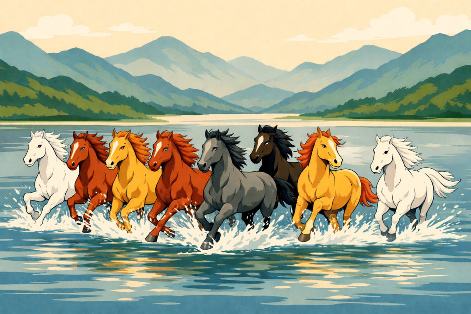 疾走する馬のイラスト背景